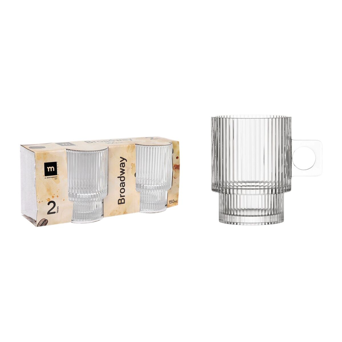 The Broadway coffee cup set by La Mediterránea is a collection specially designed for tasting short coffees or espresso, consisting of 2 pieces that offer practicality and style with every serving. Each cup has a capacity of 150 ml, ideal for enjoying the intensity and concentrated flavor of coffee without losing the proper temperature. These cups measure 6.3 cm in diameter and 8.3 cm in height, fitting perfectly in the hand for a comfortable and secure grip. Made from quality materials that ensure durability and resistance to daily use, each unit weighs approximately 185 grams, providing a solid feel without being heavy. This set, available in a total of 36 units, is suitable for both home use and hospitality establishments requiring a uniform and elegant presentation for coffee service. The sober and functional design of this set allows easy combination with different tableware styles, as well as facilitating daily storage and cleaning. Overall, the Broadway cup set represents a reliable and practical choice for those who value quality in the presentation and enjoyment of short-format coffee.