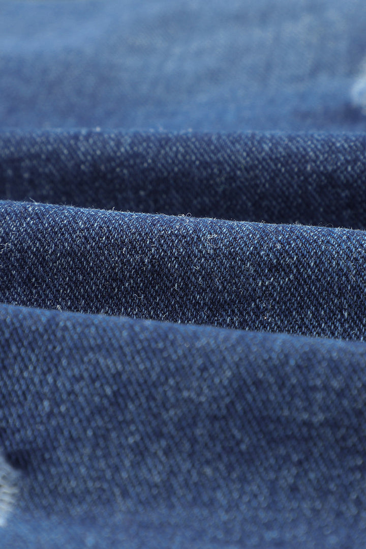 - Denim jacket with distressed and raw hem design to highlight your chic style