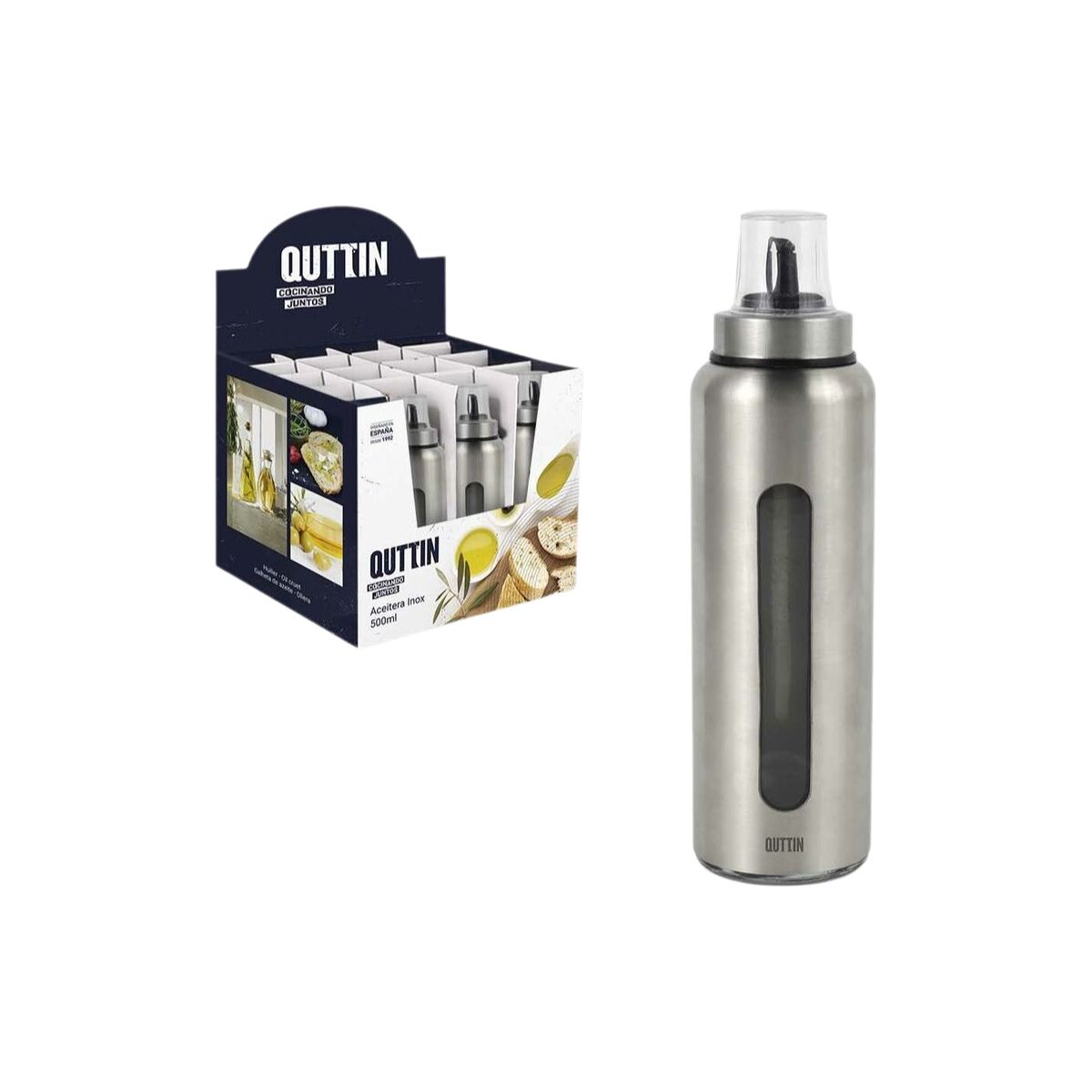 The Quttin oil dispenser is a practical and durable tool designed to store and dispense oils with precision and ease. Made of stainless steel, this high-strength oil dispenser has a capacity of 500 ml, making it suitable for both home use and professional settings such as restaurants or buffets, facilitating controlled pouring and preventing spills. Its compact and functional design allows for easy handling and quick cleaning, ensuring optimal hygiene when handling oils and similar liquids. Additionally, the set includes a pack of 24 units, ideal for those who need to supply large-scale kitchens or maintain a constant stock with consistently quality products. The combination of stainless steel material with an ergonomic format ensures this dispenser preserves oil quality, preventing oxidation and extending freshness. In summary, the Quttin 500 ml oil dispenser is a reliable and efficient solution for controlled oil dosing in various culinary contexts.