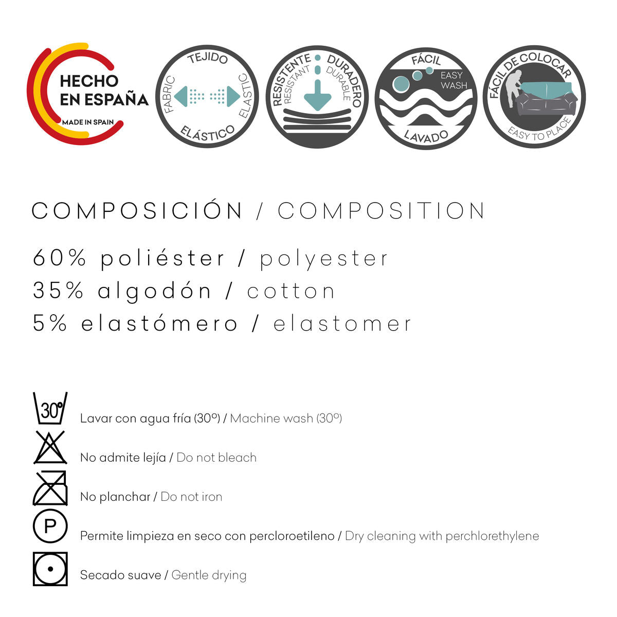 • Maximum wash temperature 30 ºC